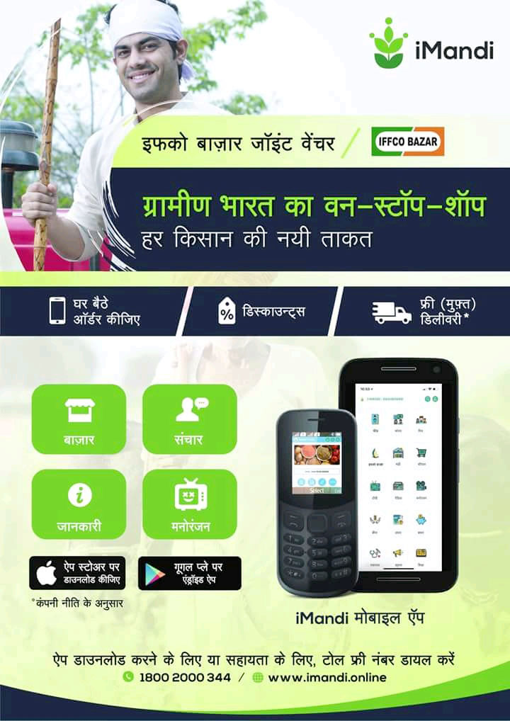 Tackling the issues of farmers in a comprehensive manner, IFFCO has launched a mob application called “iMandi” which answers their survival needs on the one hand and cultural needs on the other.