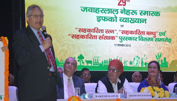 The event was organized in the NCUI Auditorium on Thursday in Delhi where Sahakarita Awards were also given. The IFFCO Sahakarita Ratna award was presented to Smt Akokala Ponjen Luci from Nagaland and the IFFCO Sahakarita Bandhu award was presented to Bhup Singh Rahar. The first time award called the IFFCO Sahakarita Sangarakshak Award was given to Shri I P Appana from Mauritius.