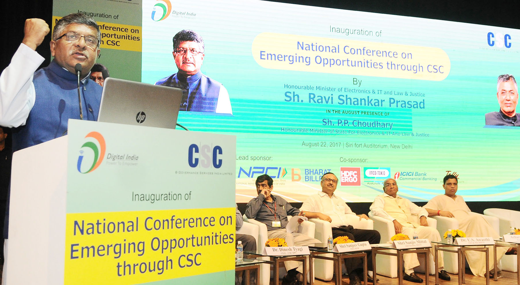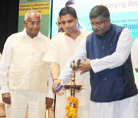 ”Our Government is committed to developing a new India, free from hunger & deprivation, by the year 2022”, said Union Minister for Electronics & IT and Law & Justice, Ravi Shankar Prasad while inaugurating National Conference on Emerging Opportunities through CSC in Siri fort Auditorium in New Delhi on Tuesday.
