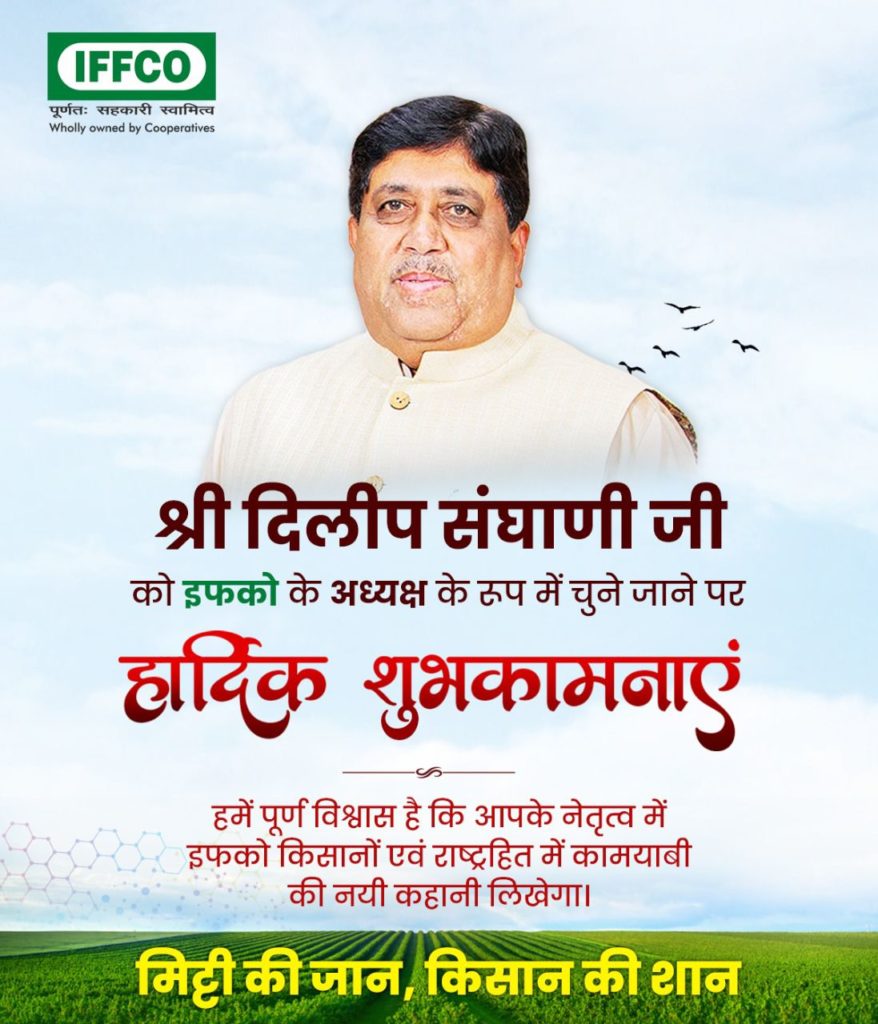 World’s Number One and largest Cooperative Indian Farmers Fertiliser Cooperative (IFFCO) in its elections for Chairman today elected Shri Dileep Sanghani as 17th Chairman of IFFCO. These elections were held due to demise of incumbent Chairman Shri Balvinder Singh Nakai earlier on 11th October 2021.