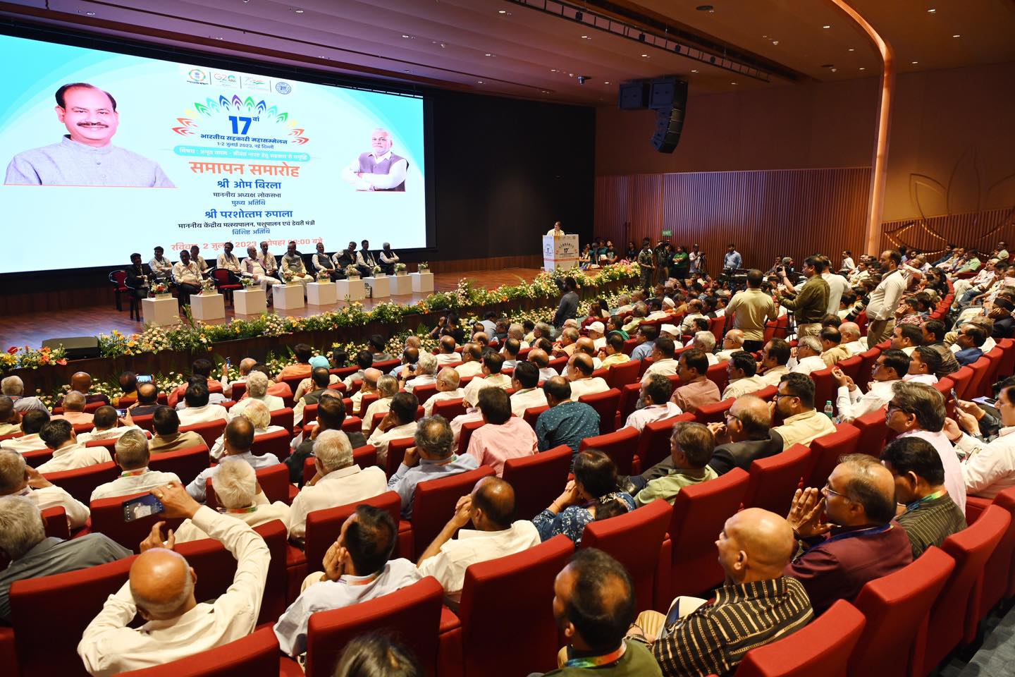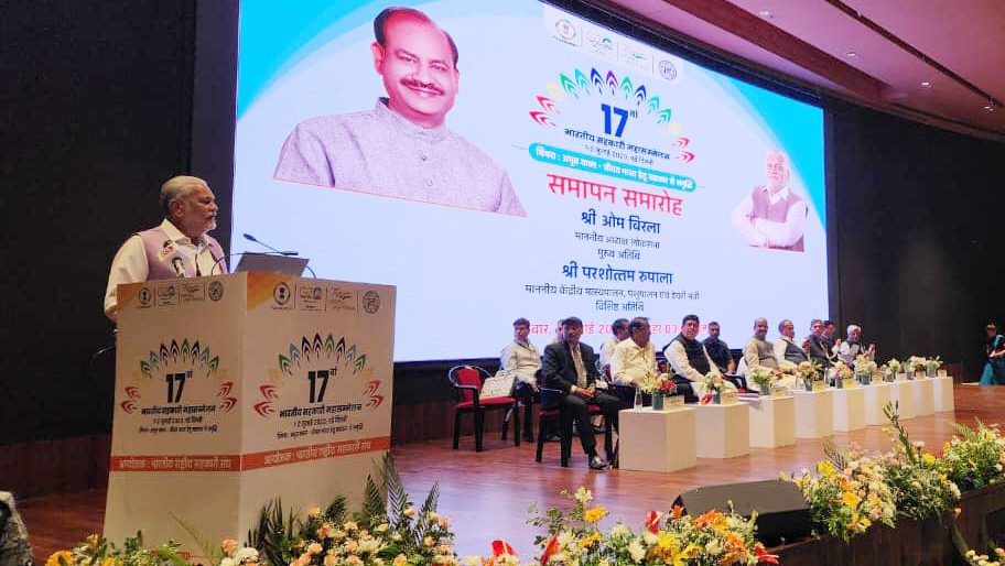The valedictory event of the 17th India Cooperative Congress was held on Sunday at Pragati Maidan, in which Lok Sabha speaker Om Birla was the chief guest and the Union Minister of Fisheries & Animal Husbandry Parshottam Rupala was the guest of honour.
