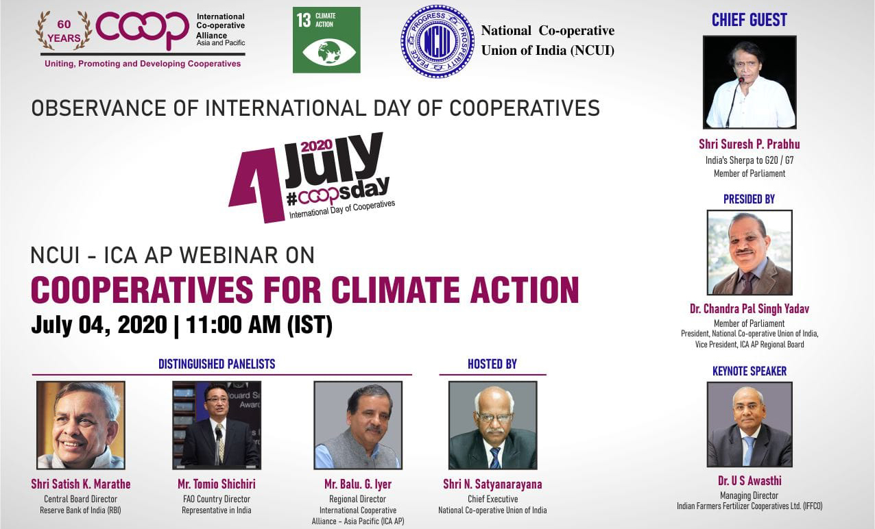 The apex body of cooperatives-NCUI in collaboration with International Cooperative Alliance – Asia Pacific (ICA-AP) is organizing a Webinar on the occasion of International Day of Cooperatives on Saturday 4th July 2020 at 11 AM which will be inaugurated by former Union Minister and Rajya Sabha Member Suresh Prabhu.