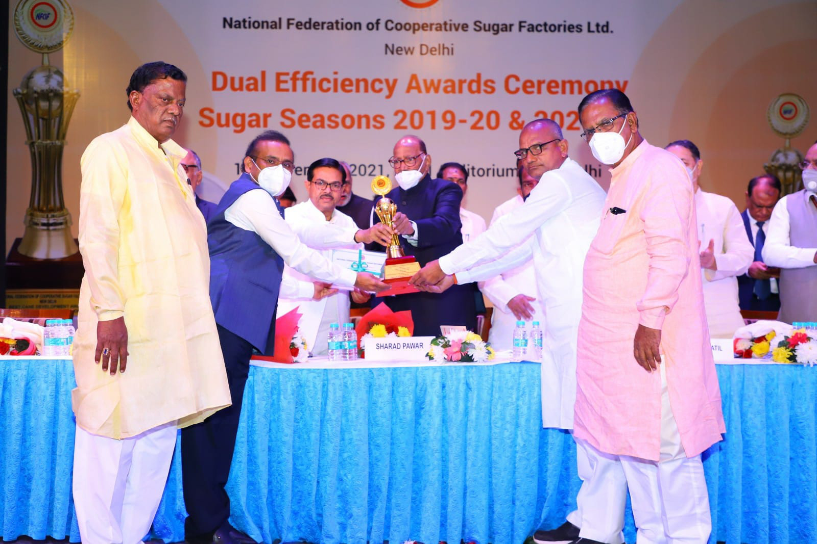 The apex body of sugar co-ops-National Federation of Cooperative Factories (NFCSF) gave away several Efficiency Awards to winners at a glittering function, organized at the NCUI Auditorium in Delhi on Tuesday. The awards were given away by Sharad Pawar, B L Verma, Dilipwalse Patil, Rajesh Tope and others.